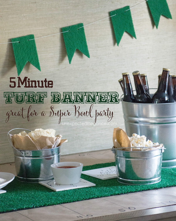 Check out these posts for more quick and easy Super Bowl decor ideas: Football Play Hot Pads & 10 Minute Football Field Table Runner