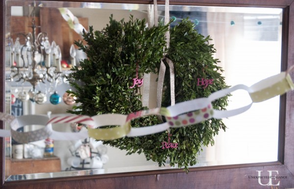 My “theme” this year (and last) is very vintage-y. I used a lot of old ornaments that I’ve collected over the years and my kids helped make some of the other decorations out of paper. I love the feel and hope you too…