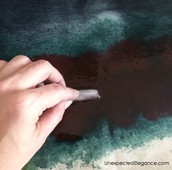 I poured a small amount of the dye onto the fabric, then used a piece of ice to spread it out.
