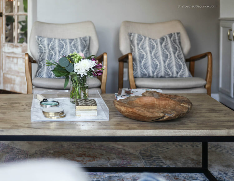 Check out these simple spring living room touches and my new furniture configuration. The space feels more open and bright!